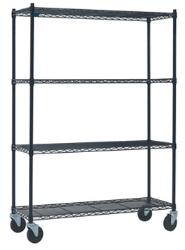 | These mobile wire shelving units are attractive and highly functional. Open wire design reduces dust build up and improves air circulation. Units include four 5" locking swivel casters. Powder coated black finish is chip and scratch resistant. Shelves are adjustable in 1" increments. Easy to assemble. No special tools required. Choose from unit height of 36" or 69". Also available in 63" & 86". Maximum Unit Capacity: 700 lbs. |