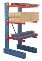 | This heavy duty Cantilever Rack is ideal for storing, bar stock, or other long materials. Available with either single sided or double sided base. Columns are available in 8', 10', or 12' heights. Arms are available in 24", 36", or 48" and have 3" spacing increments. Arms utilize 14 gauge steel. Two bases/columns, one brace set and arms are required to make one free standing starter unit. Additional sections can be added to starter unit by purchasing one additional base/column, one brace set and arms. For additional specifications please contact a sales representative. |