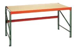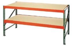 | The FastRak workbench utilizes the same heavy duty components as our popular FastRak bulk shelving. Extremely rugged, supporting 1800 lbs. on a 72" wide unit. Work surface is approximately 36" high. Easy to assemble: Heavy duty step beams lock into one-piece, all-welded, steel legs. Thick, 3/4" particle board fits inside step beams and is supported by steel supports to provide an exceptionally strong work surface. Great for heavy-duty applications including workshops, shipping/recieving, and assembly lines. Workbench is available with or without lower shelf. |
