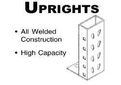| Constructed of heavy duty 14 gauge steel. Completely welded and set-up. Order two uprights to make one free-standing starter unit. Add-On units require only one additional upright (and load beam). Uprights feature 3"W x 1"D columns (Capacity: 19,400 lbs. per upright, based on maximum shelf spacing of 36"). Footplate measures 3"W x 4 1/4"D. Beams can be adjusted every 2". Upright Color: Light Green. |