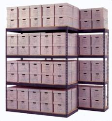 | These Record Archive Storage Units utilize the Series 200 shelf capacity and boltless design which provides for quick and easy assembly. Heavy duty boltless shelving allows access to file boxes from either side of the unit. Available with or without 1/2" Particle Board Decking. Archive storage boxes available separately. |