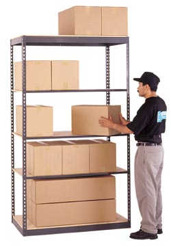 | This durable shelving utilizes low profile Single Rivet Beams to maximize available storage space. Manufactured from heavy duty steel, these units feature the Series 200 boltless design which provides for easy installation without nuts, bolts, or shelf clips. Shelves can be adjusted every 1 1/2" and are accessible from all four sides. Standard duty shelving utilizes 1/2" Industrial Grade particle board decking. Heavy duty shelving utilizes 3/4" particle board decking. Available without Particle Board Decking by request. Finish Color: Grey. |